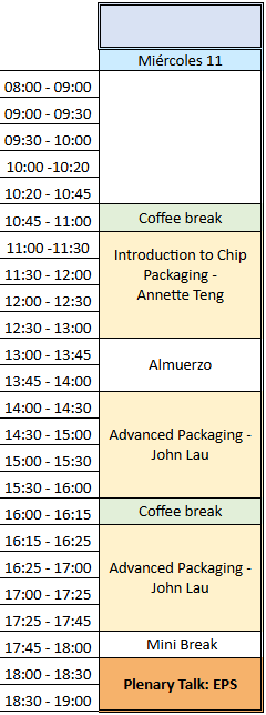 Due to the availability of the instructors, the Electronic Packaging course will be held only on Wednesday.